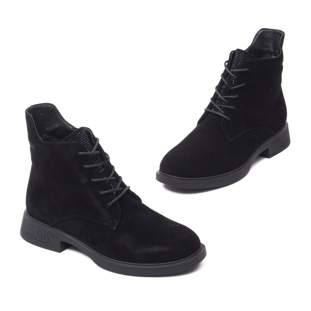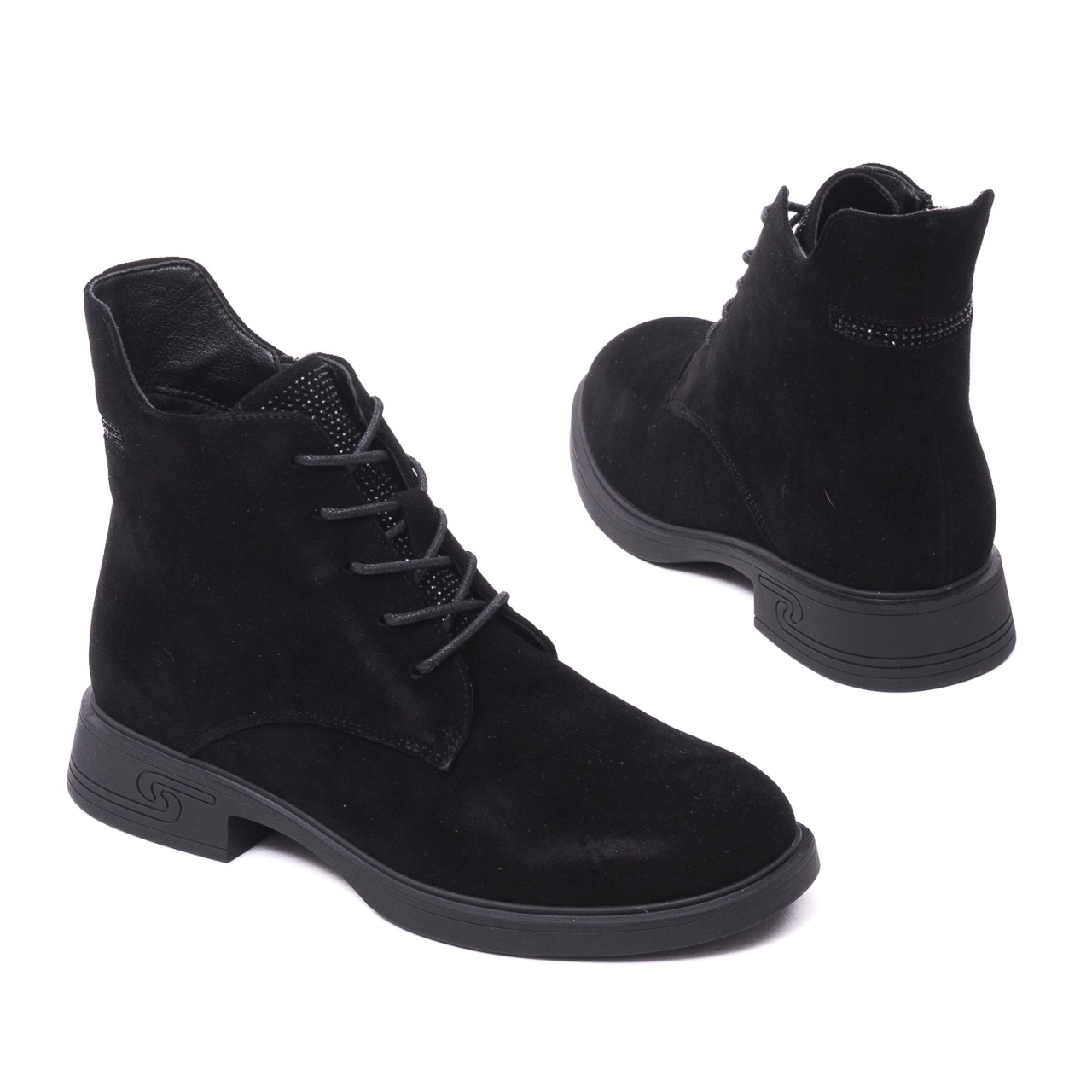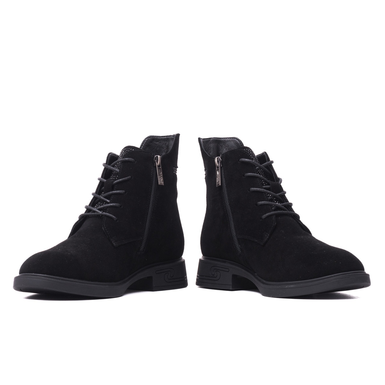 Închidere practică: Fermoarul lateral permite o încălțare rapidă, iar șiretul frontal este decorativ, accentuând stilul casual-elegant.