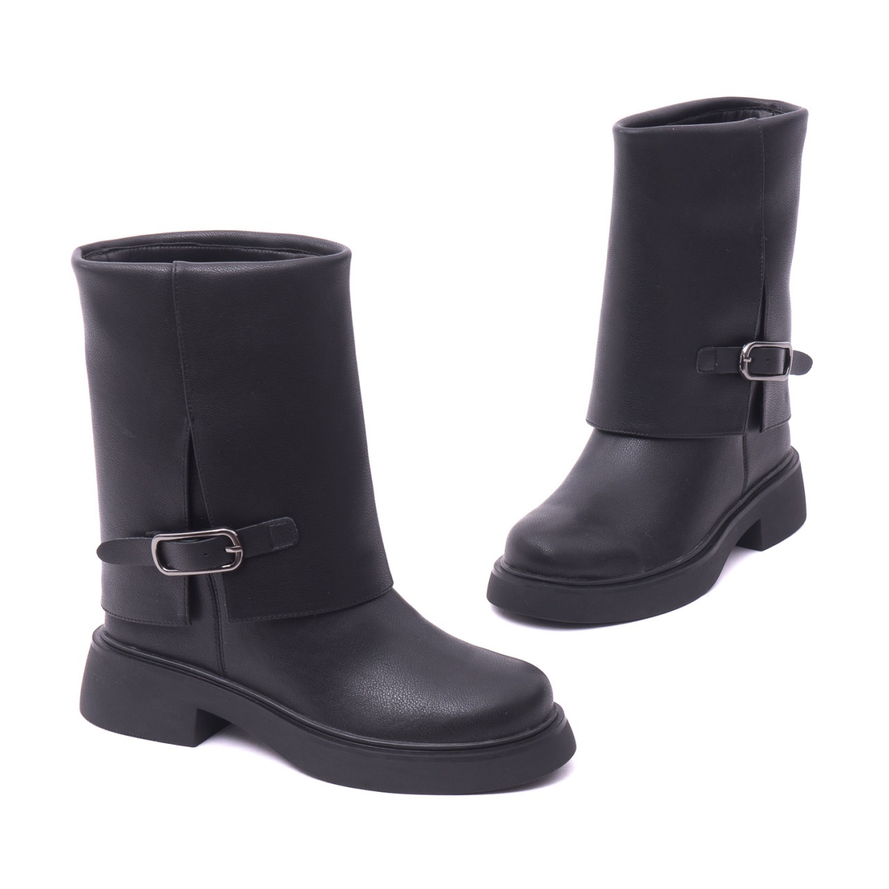Botinele Epica din piele naturală neagră sunt alegerea ideală pentru femeile care doresc un look modern, confortabil și practic în sezonul rece. Designul minimalist, cu clapetă decorativă și cataramă laterală, adaugă un aer cool și urban fiecărei ținute.