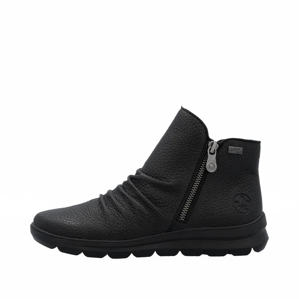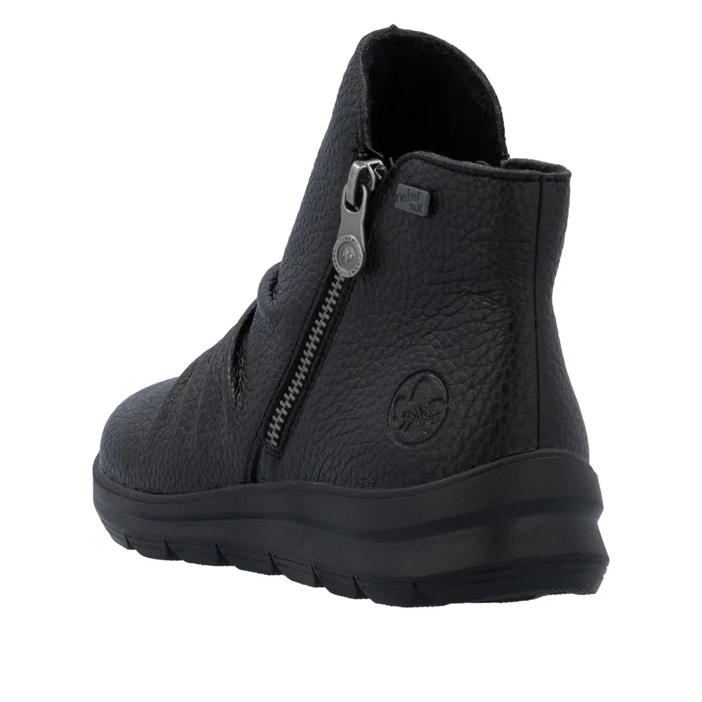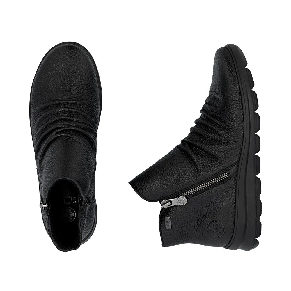 Botine damă din piele naturală Rieker, negre, cu fermoar lateral Z0056-00