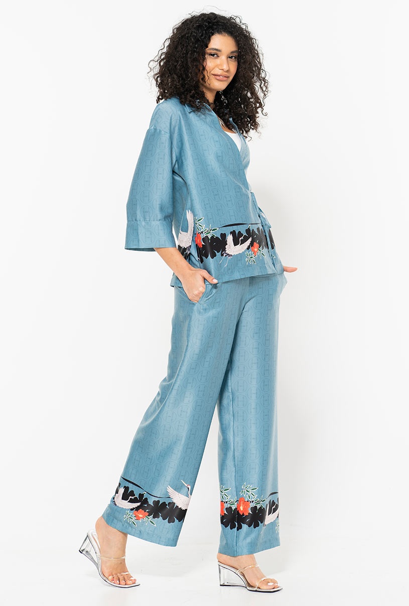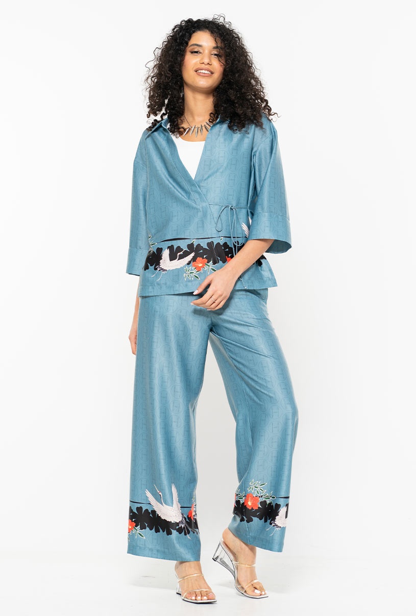 Cămașă turcoaz Brigita Hermosa – croi suprapus, imprimeu original, ediție limitată