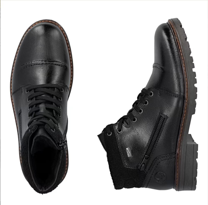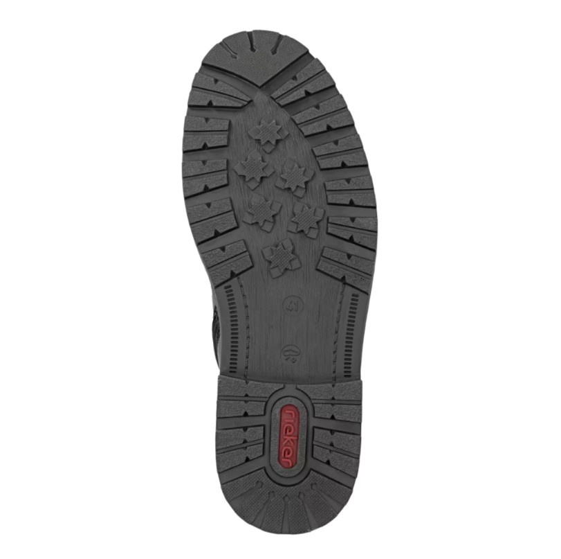 Disponibile în culoarea negru, aceste ghete oferă versatilitate și pot fi integrate ușor în orice garderobă de iarnă. Logo-ul subtil Rieker și detaliile funcționale dau un plus de personalitate acestui model clasic reinterpretat.