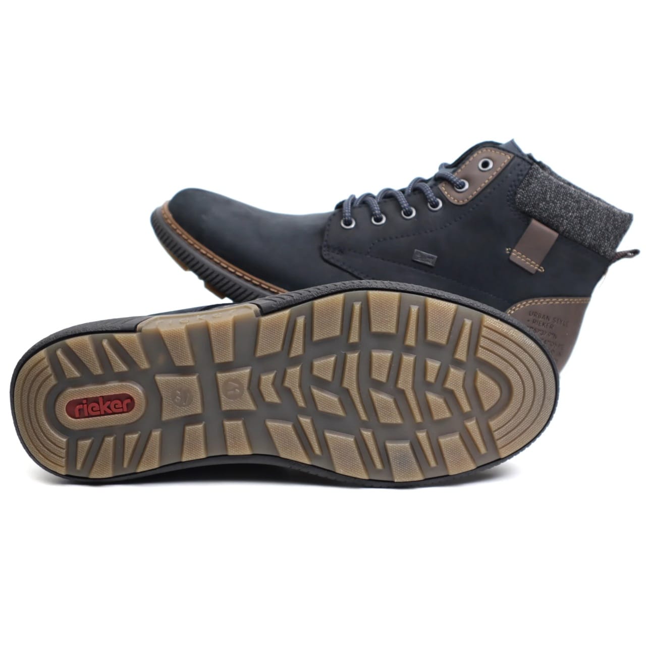- Design și Funcționalitate: Varful rotund și lățimea standard se combină cu tehnologia Rieker Antistress pentru o talpă flexibilă, antisoc și ultralight. În plus, RiekerTEX oferă rezistență la apă, temperaturi scăzute și vânt rece.