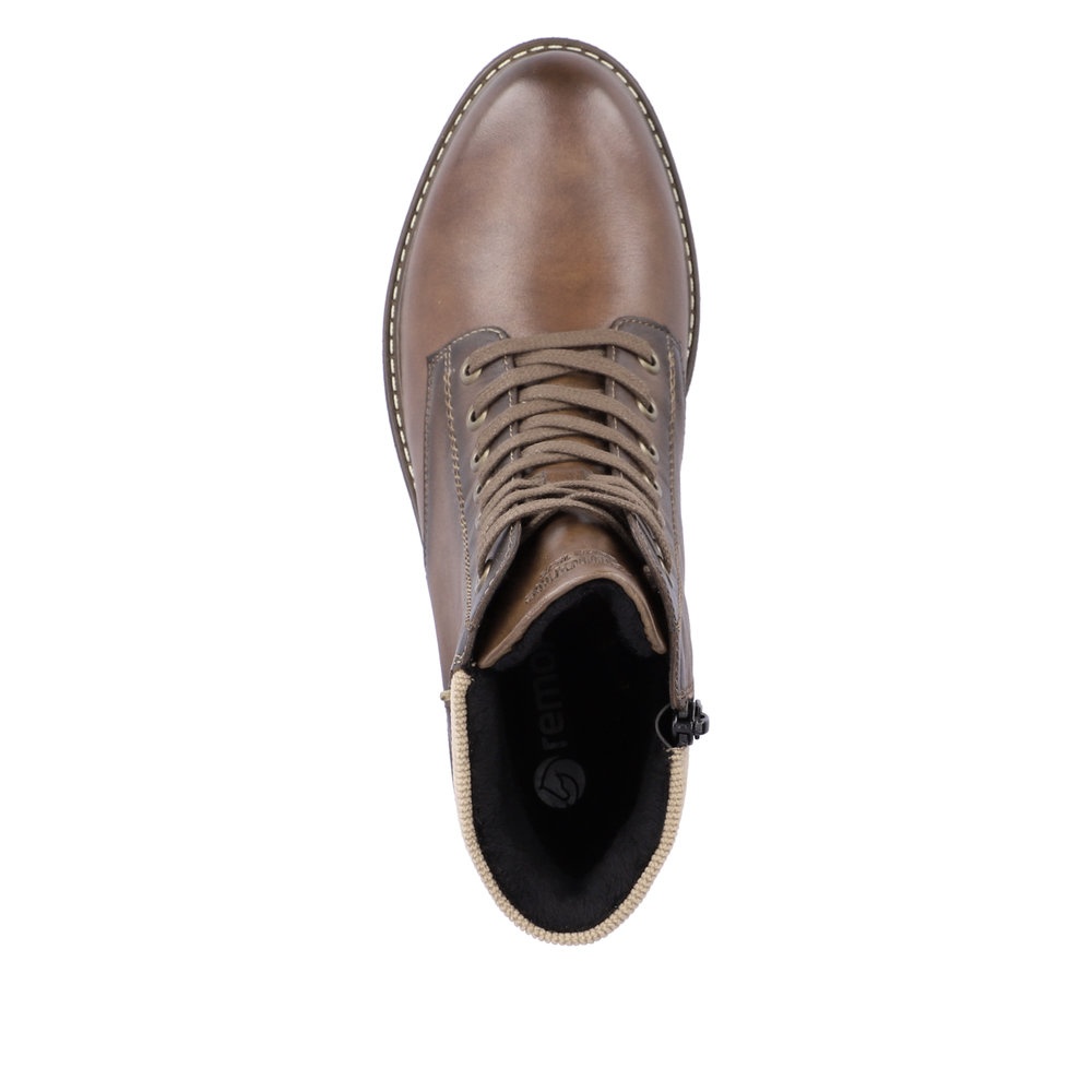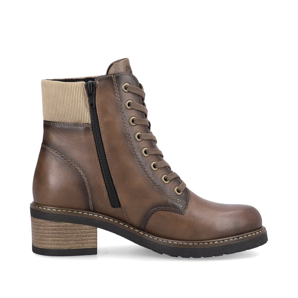 Botine de damă cu șireturi Remonte D1A70-23, maro, realizate dintr-o combinație de piele și materiale sintetice. Căptușeala confortabilă din blană scurtă și branțul moale garantează confort chiar și pe vreme rece. Un fermoar interior funcțional adaugă confort la purtare. Perfect pentru a-ți îmbunătăți stilul la serviciu, la plimbări sau pentru serile în oraș.