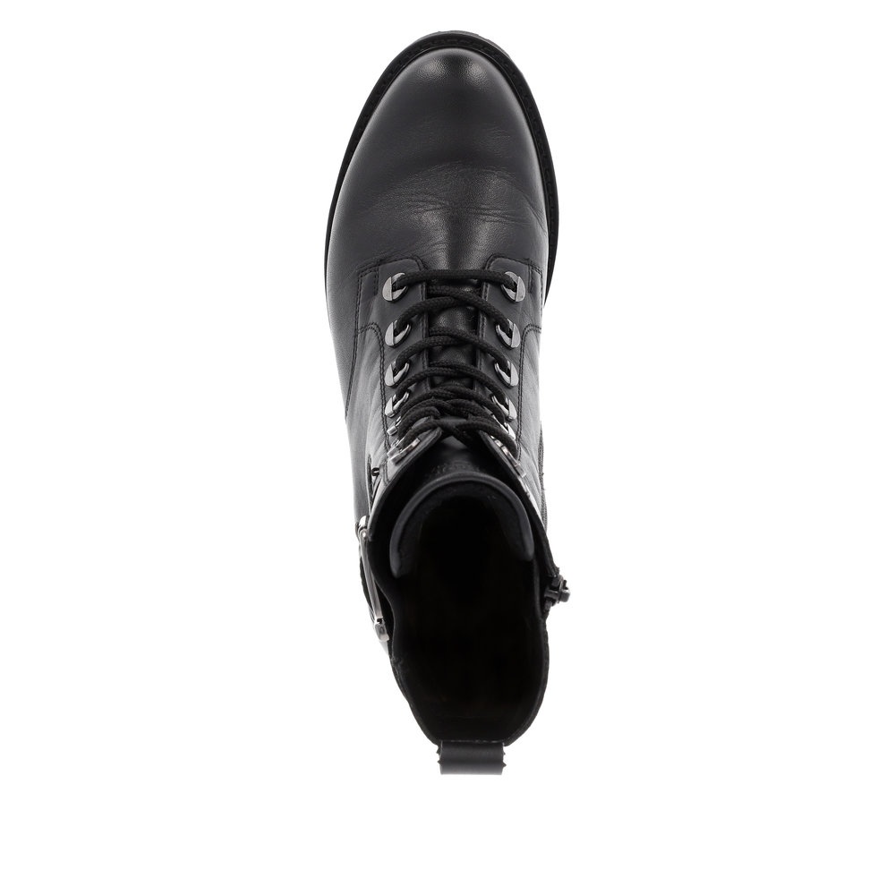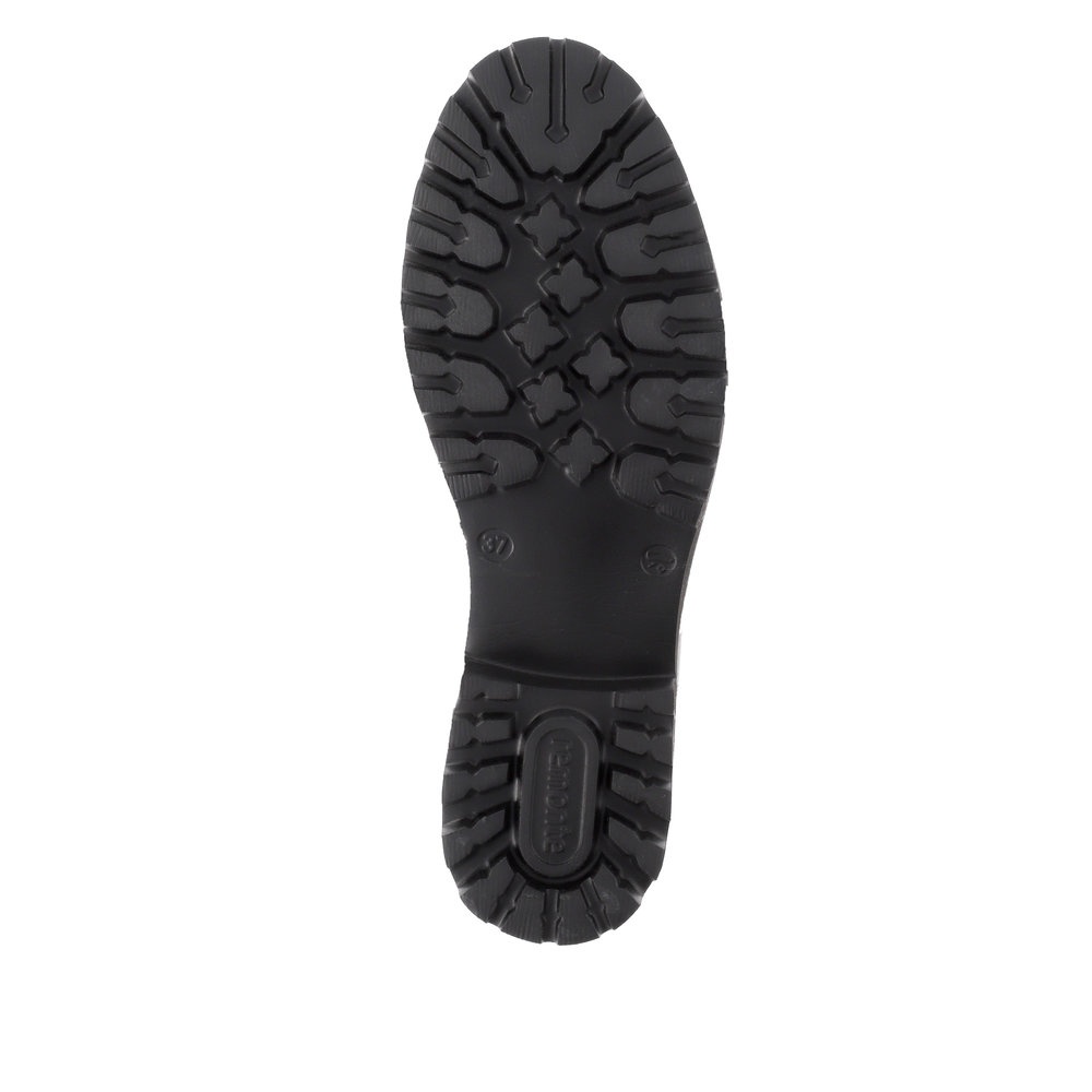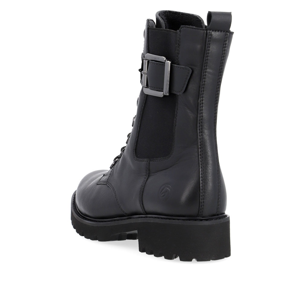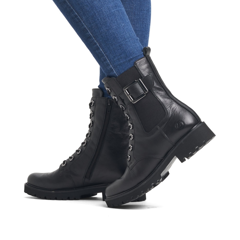 Pentru femeile care își doresc să iasă în evidență și să își exprime personalitatea puternică, bocancii rock de la Remonte sunt alegerea perfectă. Realizați din piele naturală de cea mai bună calitate, acești bocanci combină durabilitatea cu un design autentic. Tocul gros de 3 cm oferă înălțime și confort, iar logo-ul embosat adaugă o notă distinctivă designului. Talpa special concepută aderă perfect pe zăpadă, asigurând stabilitate și siguranță la fiecare pas. Sistemul de închidere cu siret și fermoar facilitează încălțarea și oferă un fit perfect pe picior. Accesoriul cu cataramă adaugă un plus de stil și atitudine, subliniind designul rock al bocancilor. Varful rotund completează designul, oferind un look modern și versatil. Culoarea neagră permite o asortare ușoară cu diverse ținute, de la jeans la rochii. Alegeți bocancii rock de la Remonte pentru un look îndrăzneț și plin de atitudine!