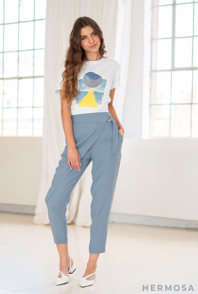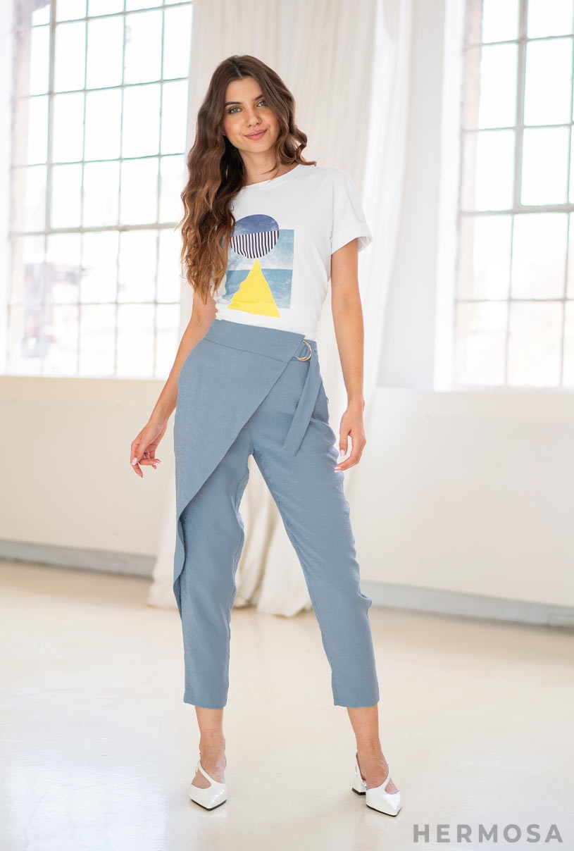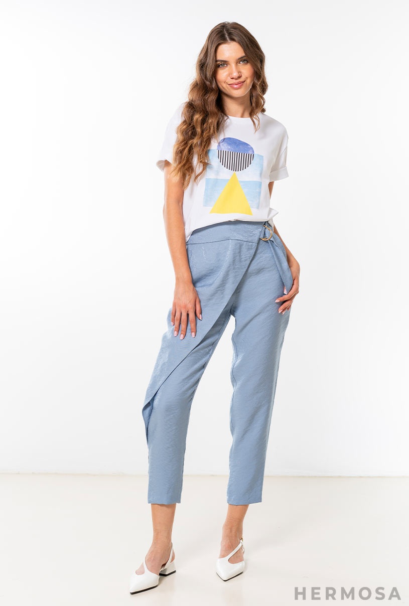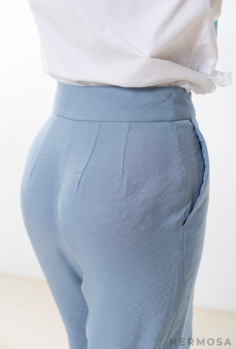 Cu pantalonii bleu Zasha marca Hermosa, vei adăuga întotdeauna un plus de stil și rafinament oricărei ținute, asigurându-te că atragi toate privirile.