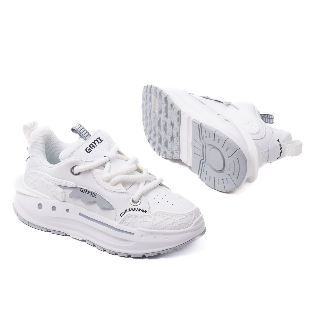 Disponibili în nuanța albă cu accente gri, acești pantofi GRYXX oferă un aer fresh, ușor de integrat în garderoba sport sau casual. Designul voluminos și detaliile grafice îi recomandă pentru cei care apreciază stilul urban actual și doresc să adauge personalitate fiecărei ținute.