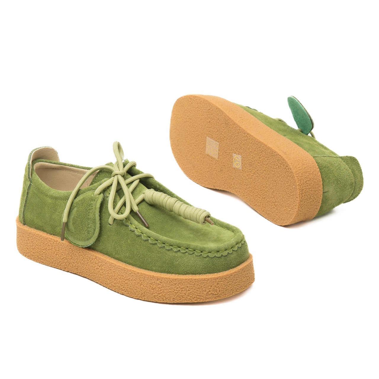 Pantofi dama din piele naturala nabuc, Feeling, T003, verde