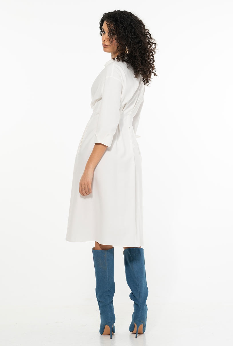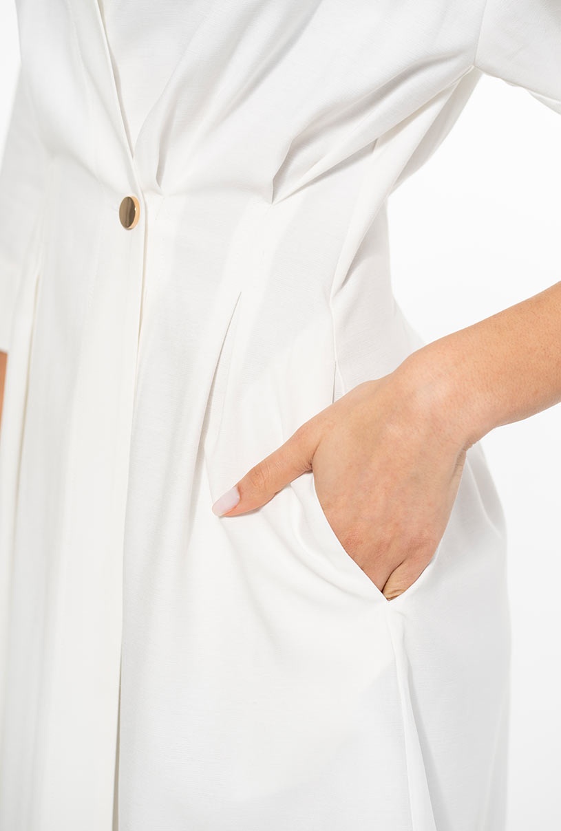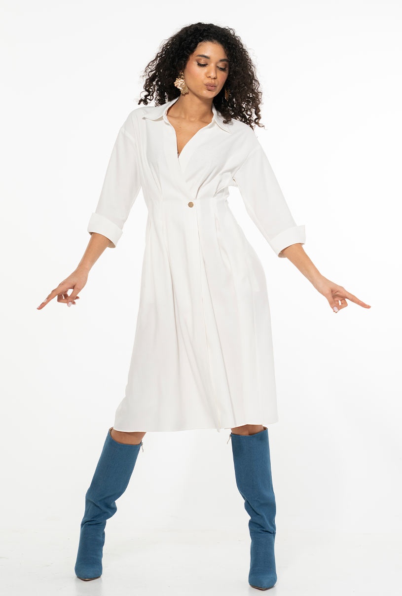 Cu un design lejer, dar sofisticat, rochia albă Adalya de la Hermosa este alegerea ideală pentru femeile care caută o piesă versatilă, potrivită atât pentru birou, cât și pentru ieșiri casual.