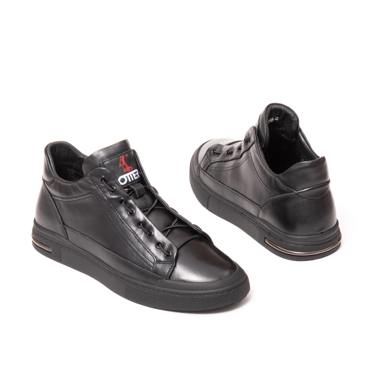 Pantofii tip sneakers pentru bărbați de la Otter reprezintă definiția eleganței contemporane și a confortului. Realizați integral din piele naturală, acești pantofi se disting prin calitatea și durabilitatea materialelor folosite. Exteriorul lucios și neted se completează armonios cu interiorul moale, oferind o senzație de confort de neegalat. Inchiderea cu șiret elastic nu doar că adaugă un plus de stil, dar asigură și o ajustare perfectă la forma piciorului. Varful rotund conferă un design clasic, în timp ce talpa cu margine cusută evidențiază atenția la detalii și măiestria artizanală. Calcaiul dotat cu pernă de aer promite o amortizare superioară, protejând piciorul și oferind un plus de confort la fiecare pas. Culoarea neagră intensă adaugă o notă de sofisticare, făcând acești pantofi ușor de asortat și potriviți pentru orice ocazie. Alegeți Otter pentru o combinație perfectă de stil, calitate și inovație!