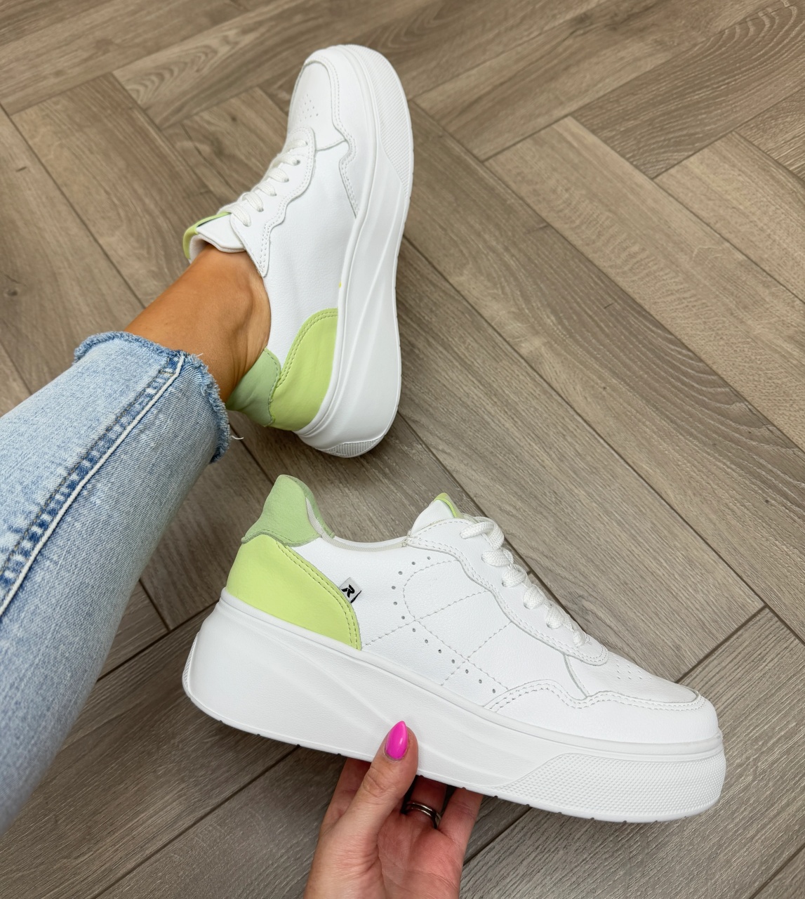 Designul sport-casual, în nuanțe de alb cu accente verzi, oferă versatilitate maximă, fiind ușor de asortat cu diverse ținute – fie pentru o plimbare relaxantă, fie pentru o zi activă în oraș.